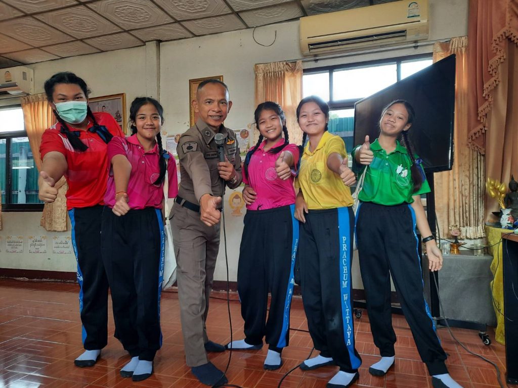 เมื่อ วันที่ 17 กุมภาพันธ์ 2568 ภายใต้การอำนวยการของ พ.ต.อ.วรยุทธ พงษ์ตัน ผกก.สภ.ลาดหลุมแก้ว โดยการมอบหมาย/ควบคุมการปฏิบัติของ พ.ต.ท.พิสัณห์ ลัคนาวิเชียร รอง ผกก.ป.ฯ /พ.ต.ท.นพดล ใจหลวง สวป. หน.ชมส. ให้ ร.ต.ต.ภูวดล นามพระจันทร์ รอง สว.(ป.)ฯ ครูตำรวจแดร์ เข้าทำการสอนโครงการแดร์ โรงเรียนประชุมวิทยา ม.3 ต.ระแหง ป.6/1-ป.6/3 (08.30-11.30)และป.6/4 (12.30-13.30)